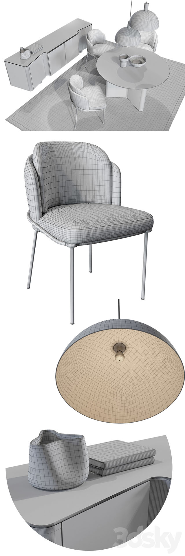 米诺蒂套装/菲尔黑圆形餐桌和餐椅素材之家精选3D模型