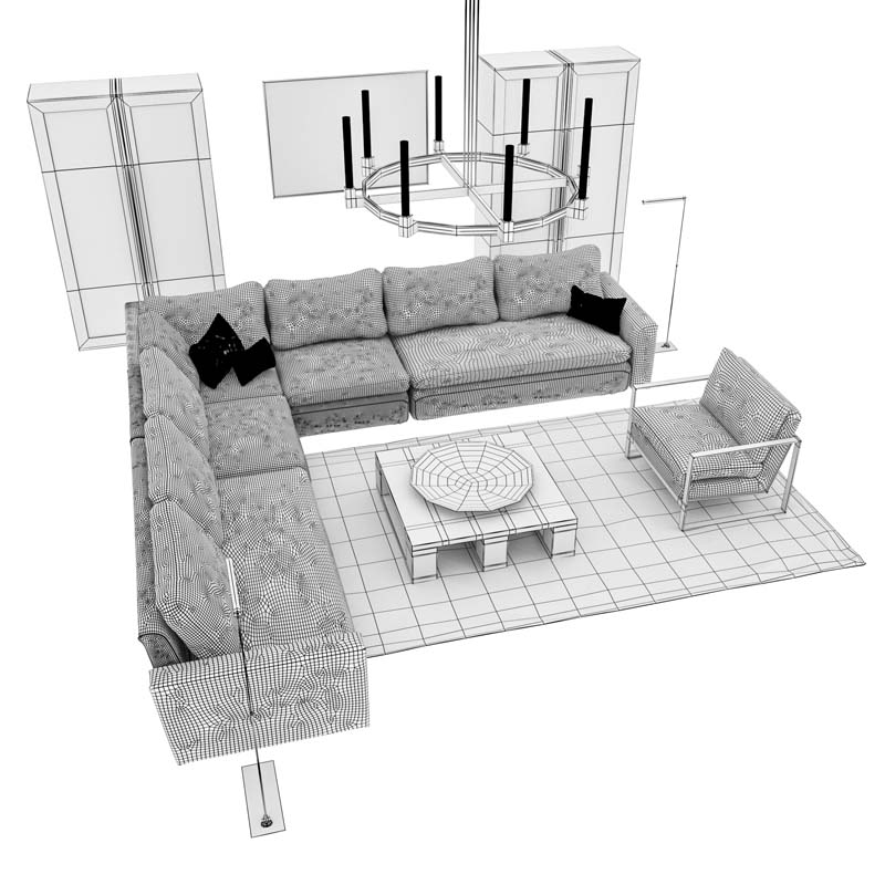 家用转角沙发及橱柜和茶几素材之家精选3D模型