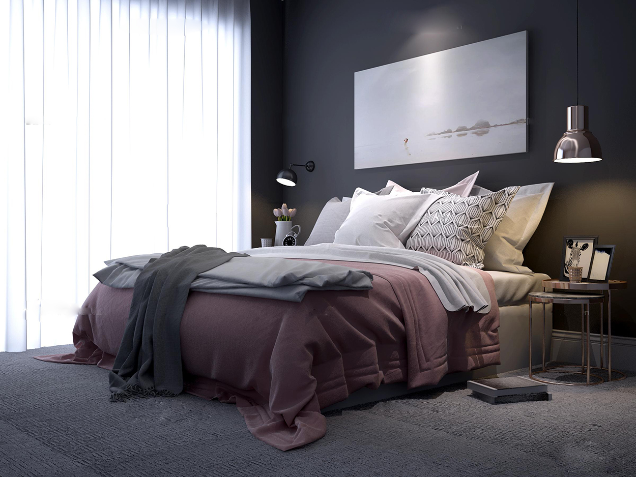 现代北欧风床山水挂画壁灯床头柜组合素材之家精选3D模型