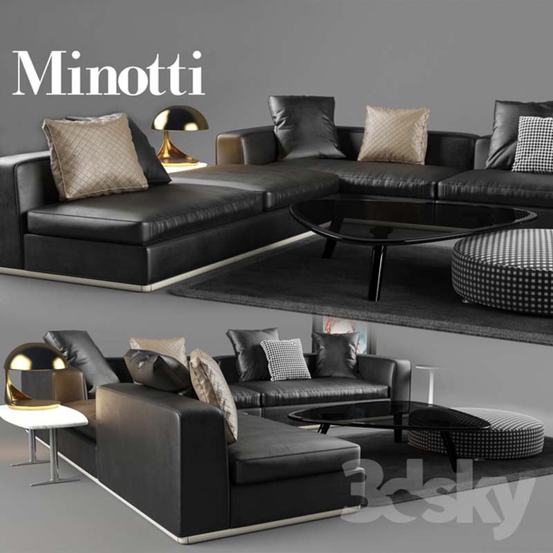 Minotti黑色转角真皮沙发素材之家精选3D模型