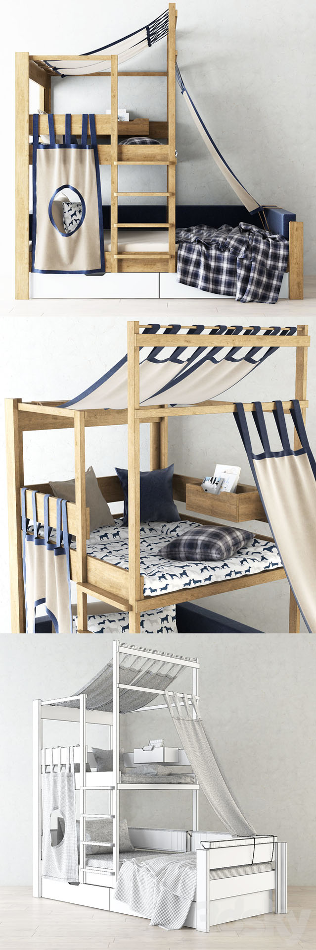 双层上下铺儿童木床素材之家精选3D模型