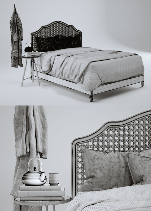 RH洛林(Rorraine)藤床:160x220x150cm 514k polys