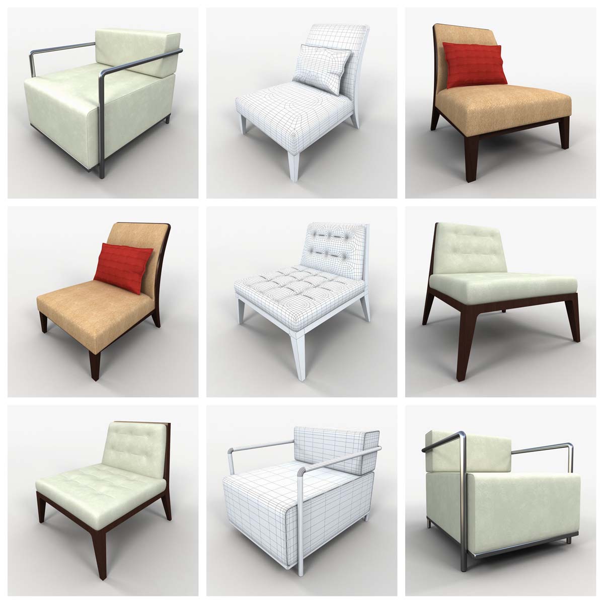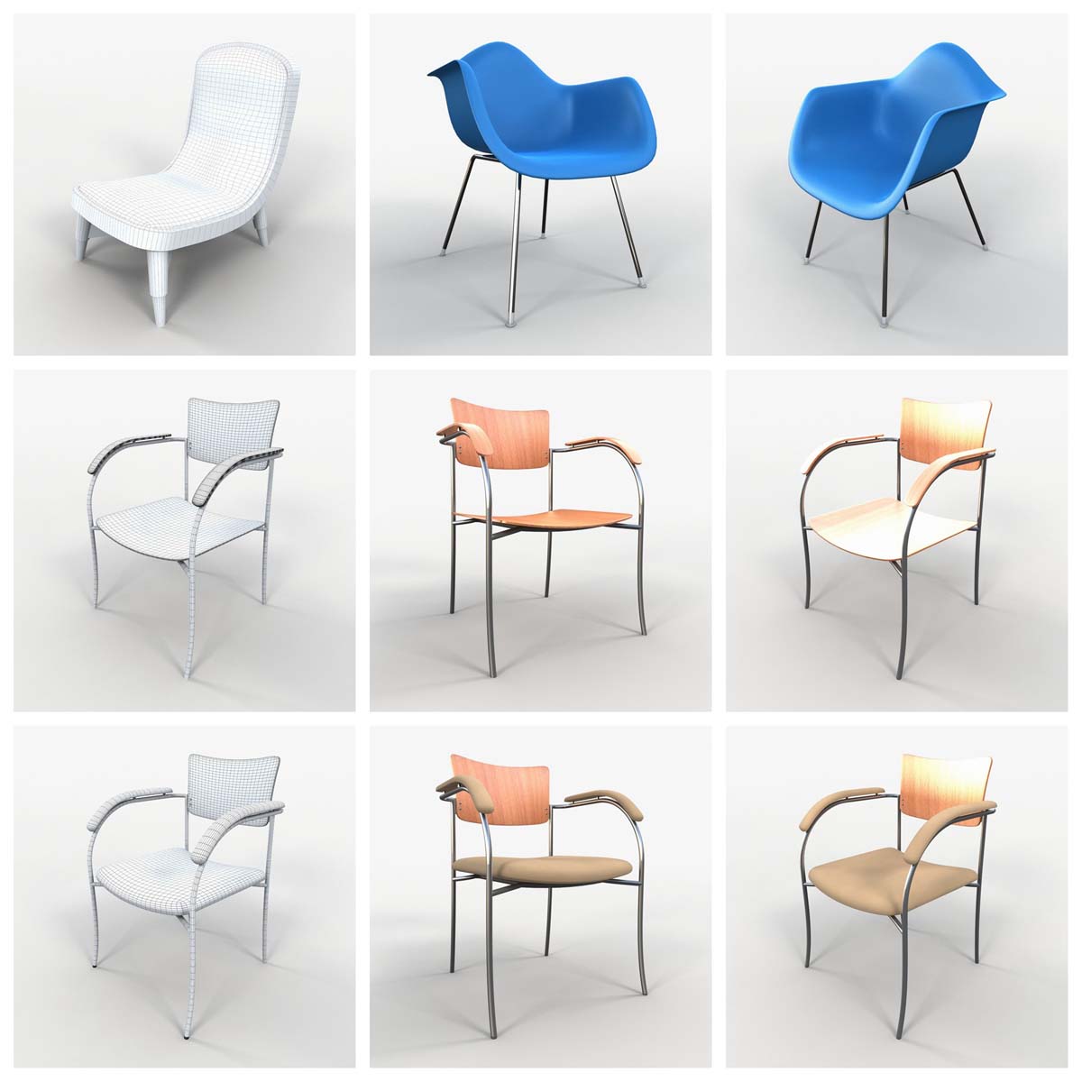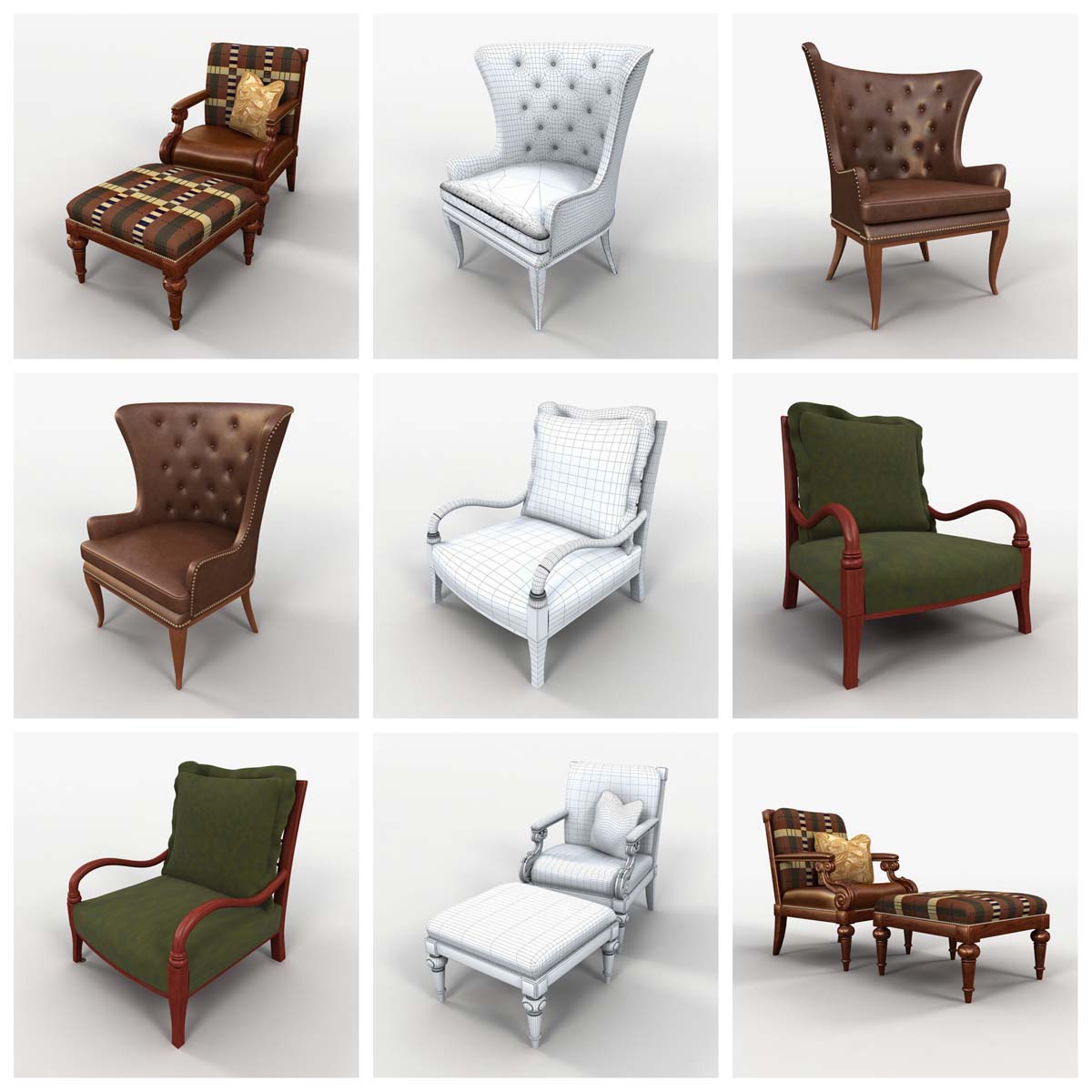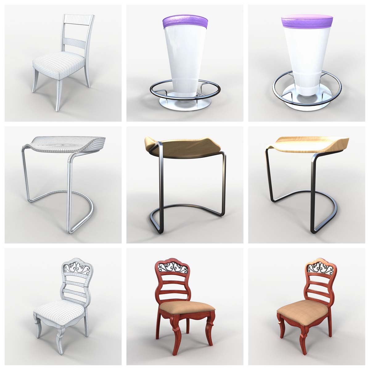 这个3D模型系列提供73种精心制作的各种椅子。
