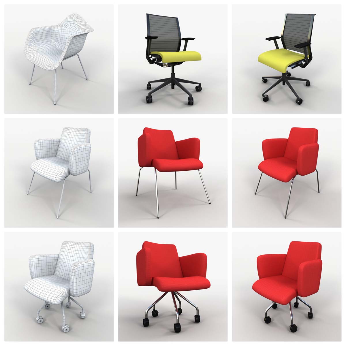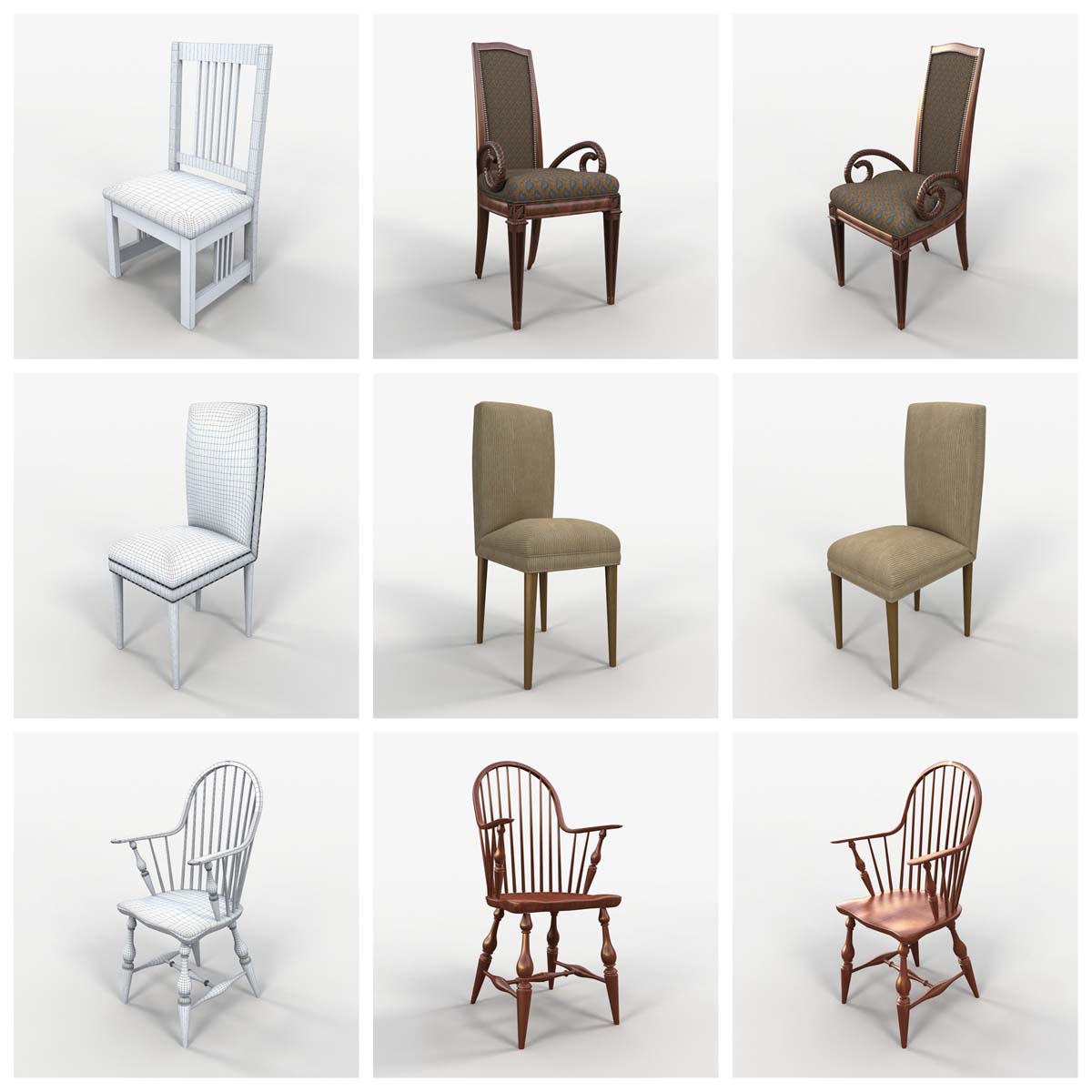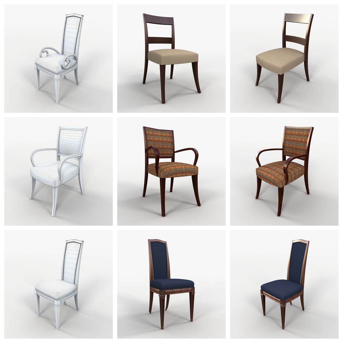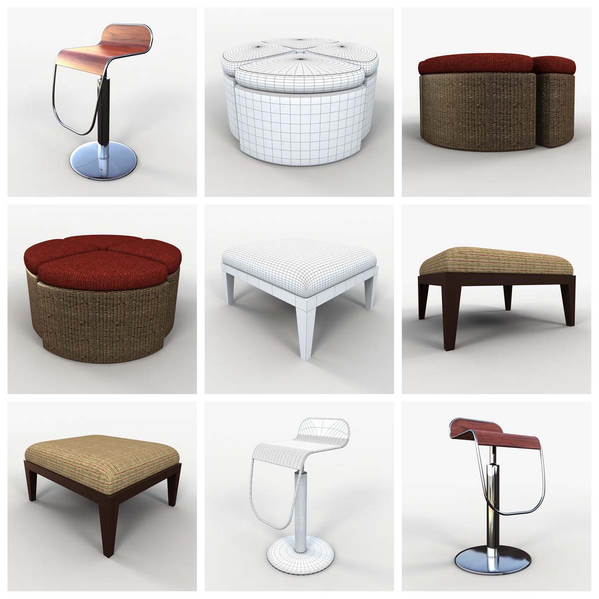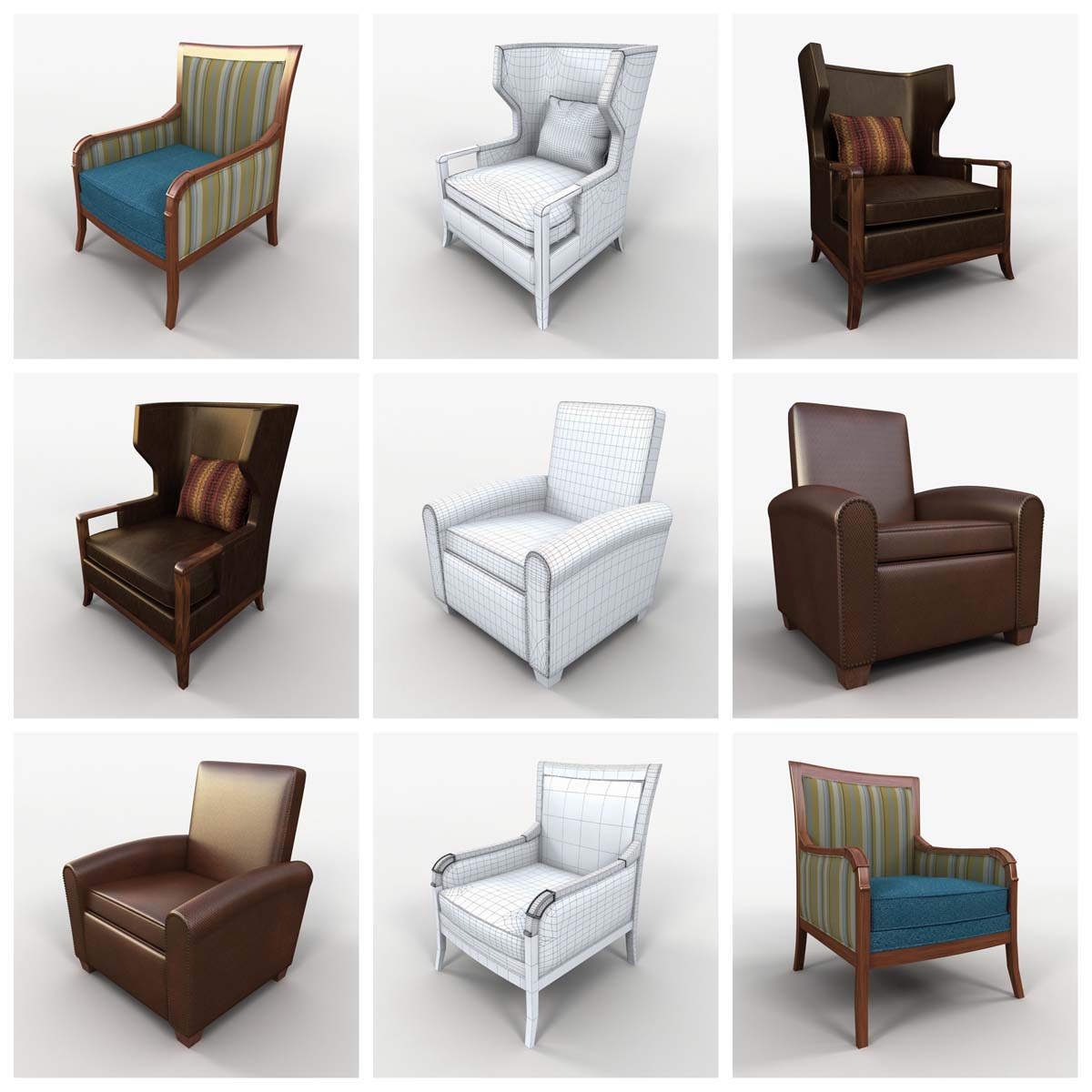 这个3D模型系列提供73种精心制作的各种椅子。