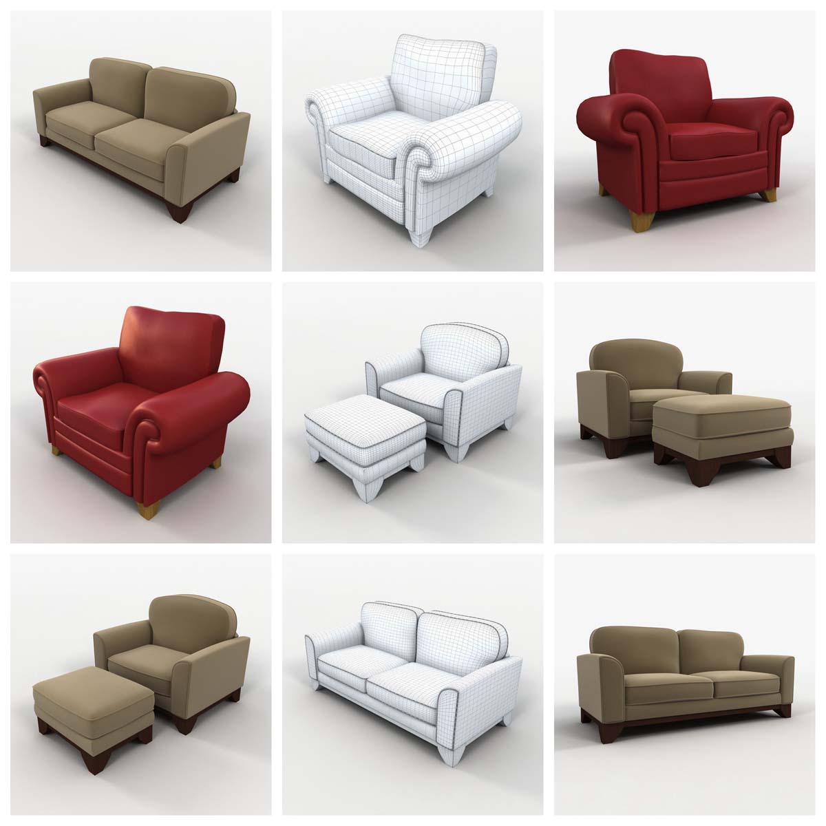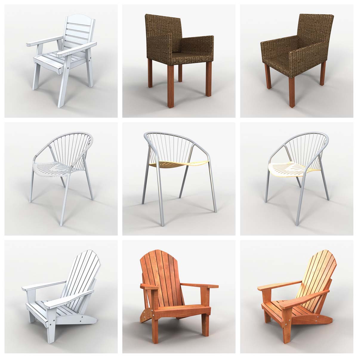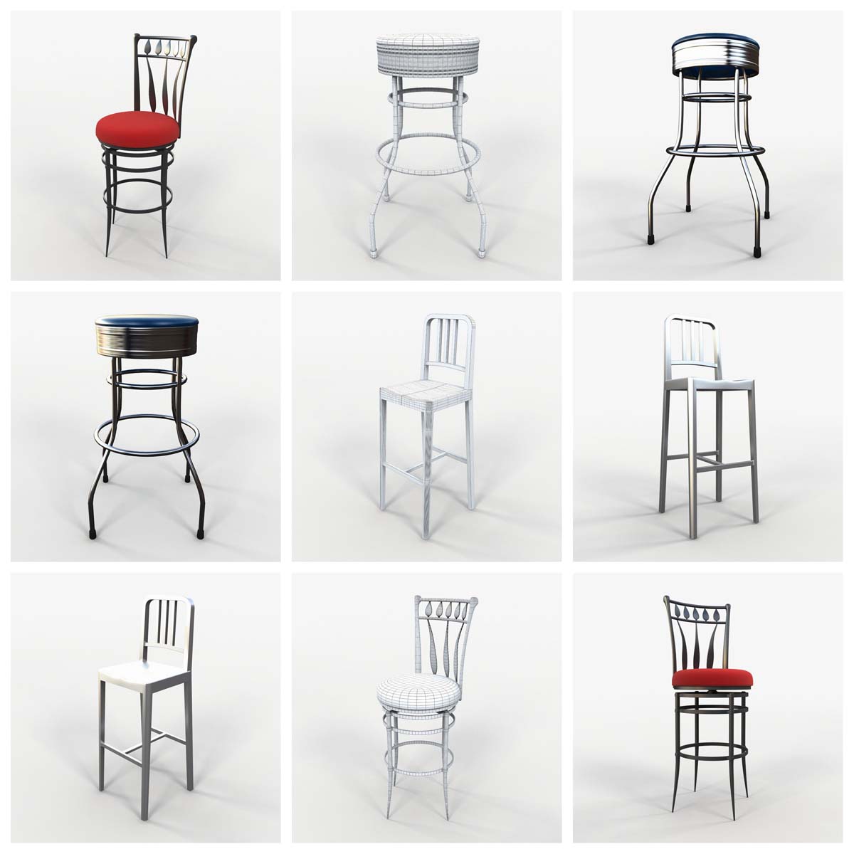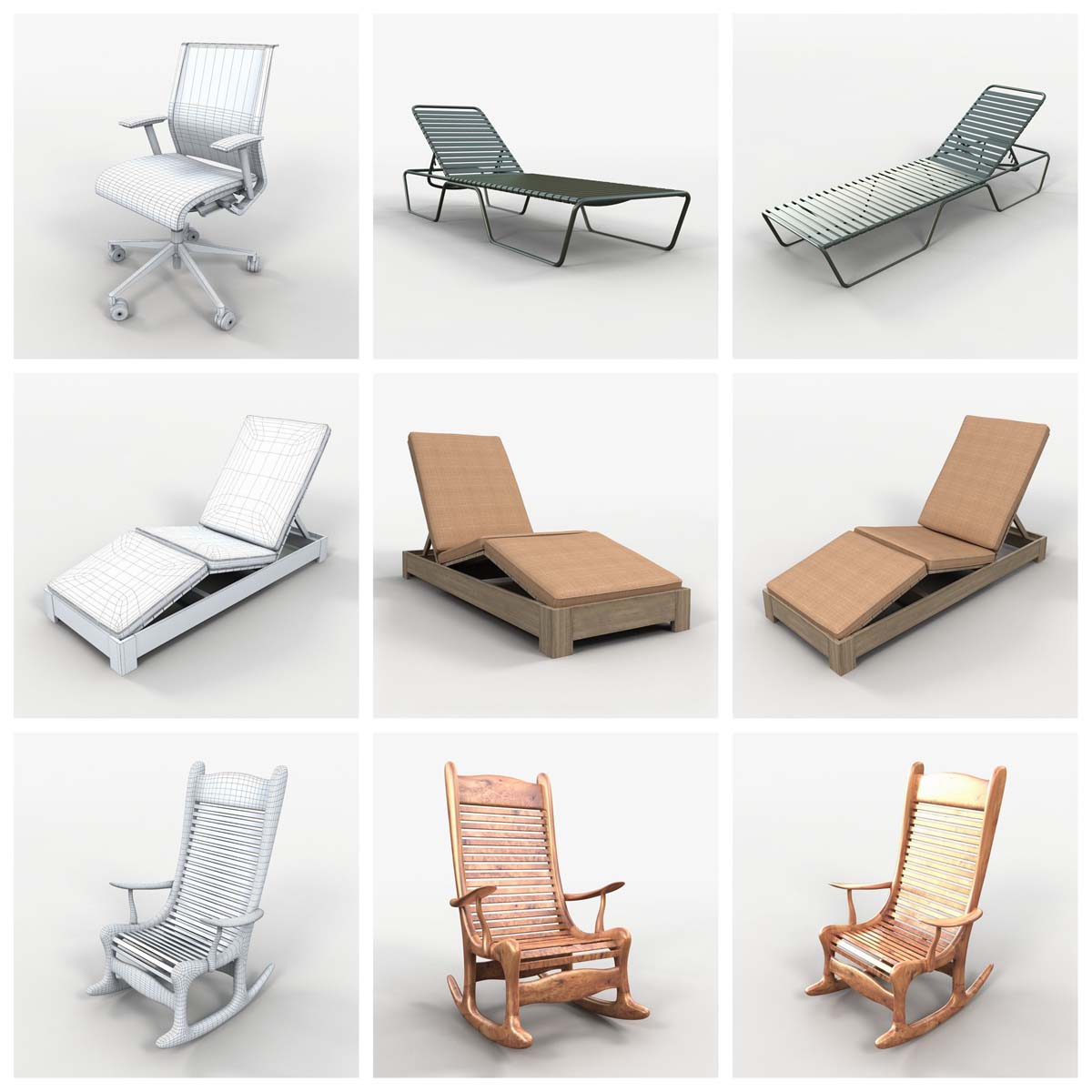 这个3D模型系列提供73种精心制作的各种椅子。