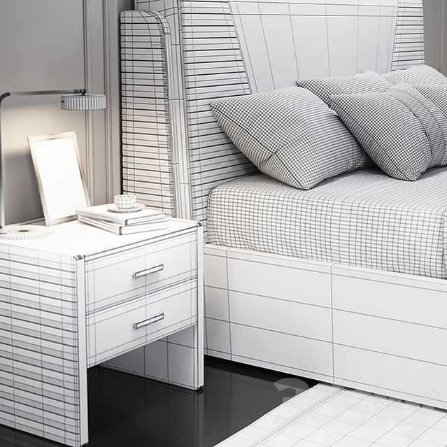 欧式现代双人床和床头柜台灯组合素材之家精选3D模型