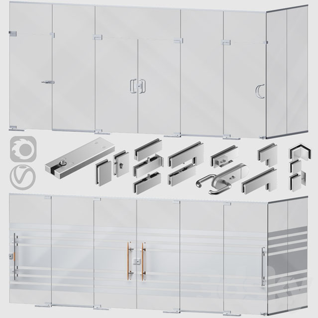 玻璃隔断和门隔板门把手素材之家精选3D模型