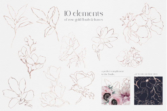 此外,您还可以得到10种玫瑰金花卉和叶子元素,以完美配合剪贴画系列。
