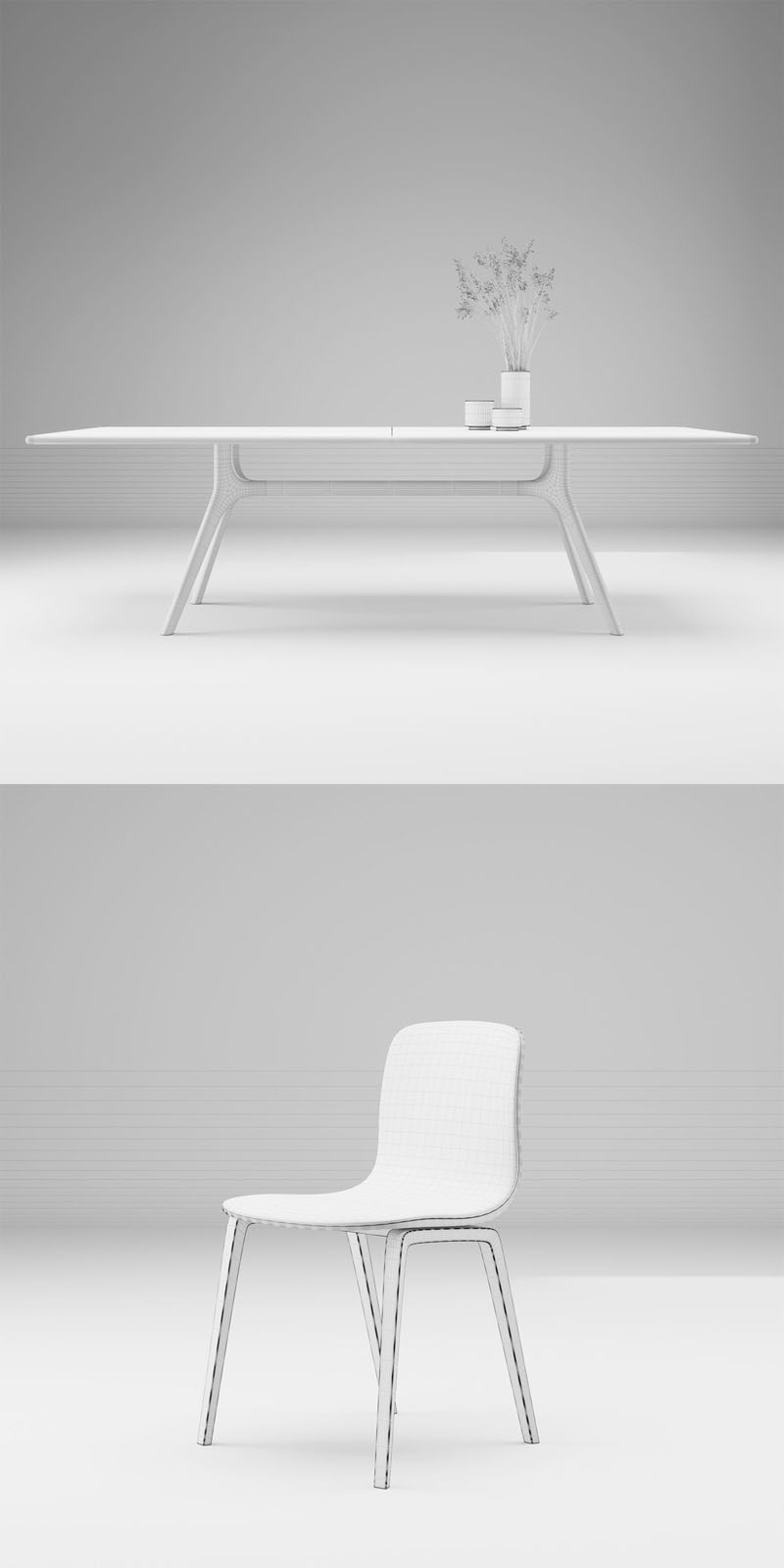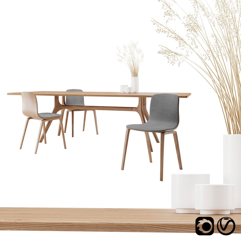 餐桌餐椅和花瓶干草素材之家精选3D模型