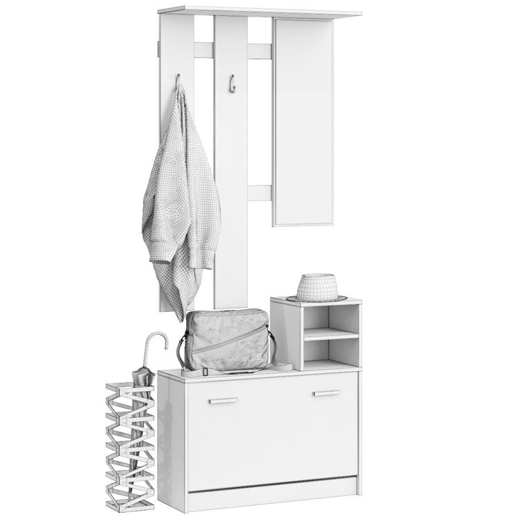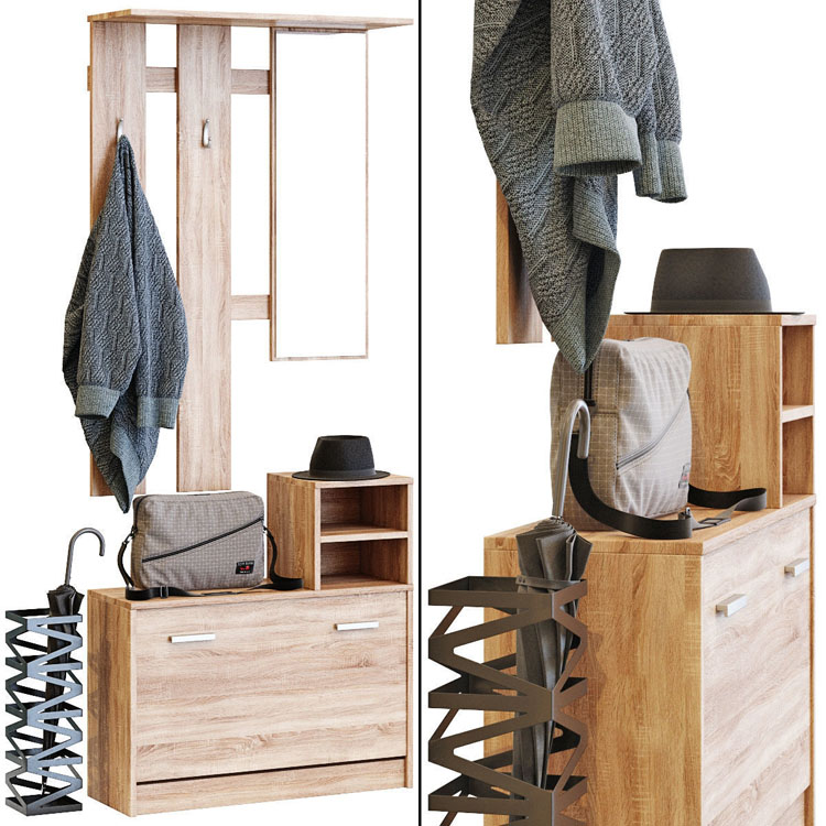 房间走廊鞋柜衣帽架雨伞和包组合素材之家精选3D模型