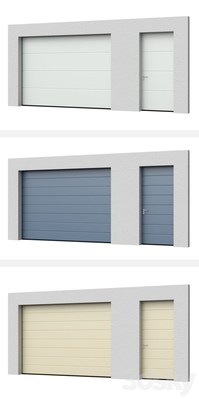 分段自动钢门霍曼,两种版本:M肋和L肋双皮LPU组合门,带侧门两种位置的门:打开/关闭16种原始颜色材料V-Ray + Corona Renderer