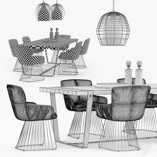 Freifrau餐桌椅套装_01餐桌椅套装包括:Freifrau Marla扶手椅低竖琴架Janua BB 11固定桌餐桌由Foscarini制作的Cage grande和花瓶。 尺寸(毫米):Marla扶手椅580x630,H810固定桌1050x2600,H750笼形D460,H760-2460多边形:210209垂直度:123683您可以在“板岩材质编辑器”中找到其他材质和颜色。 不要使用紧凑型材料编辑器。 3dsmax2011,包括OBJ格式。