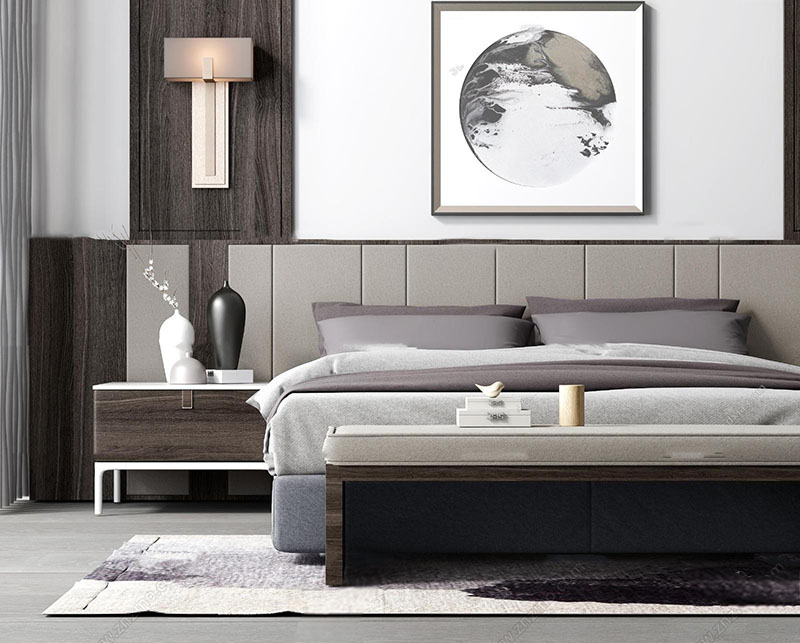 新中式双人床床头柜壁灯组合素材之家精选3D模型