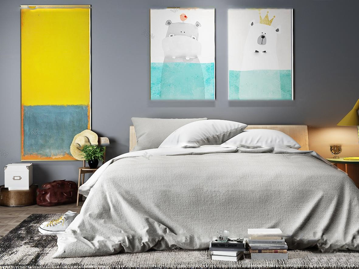 现代北欧双人床室内场景素材之家精选3D模型