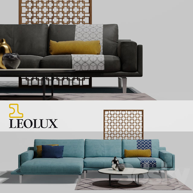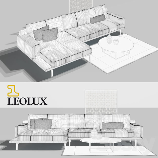 LEOLUX转角沙发和圆形茶几地毯组合素材之家精选3D模型
