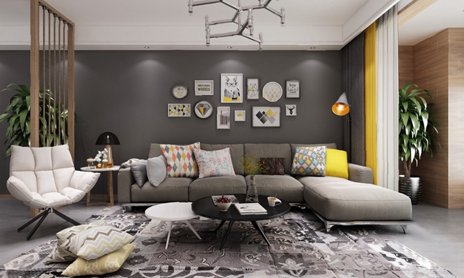 北欧沙发茶几扶手椅和装饰品组合素材之家精选3D模型