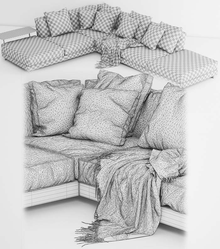 转角布艺沙发和靠枕素材之家精选3D模型