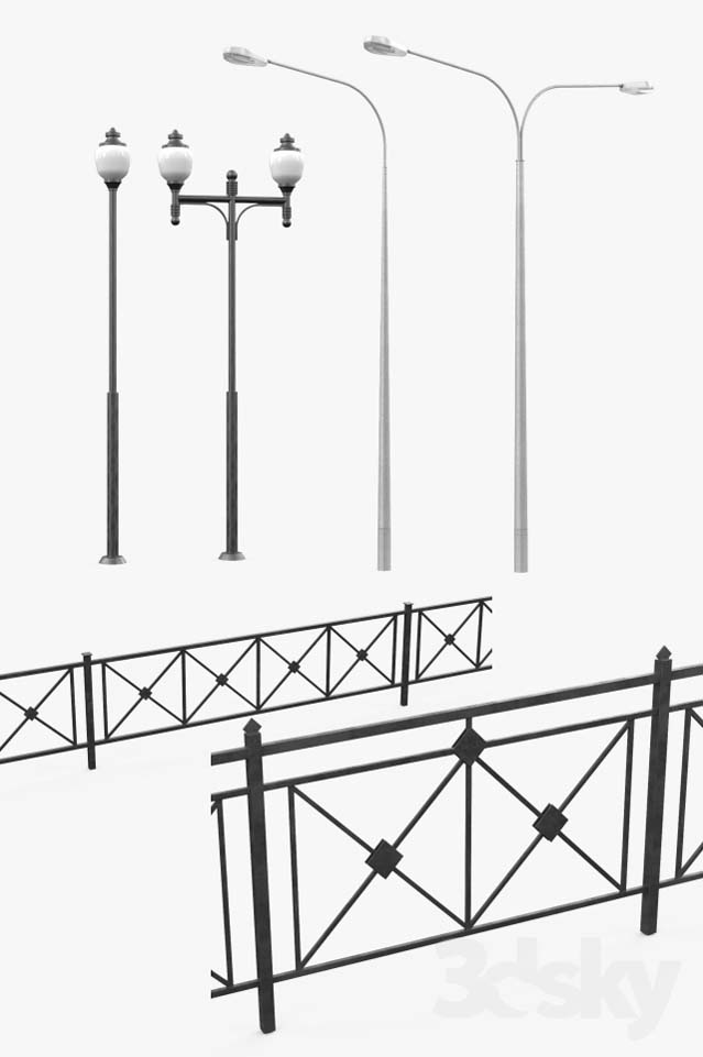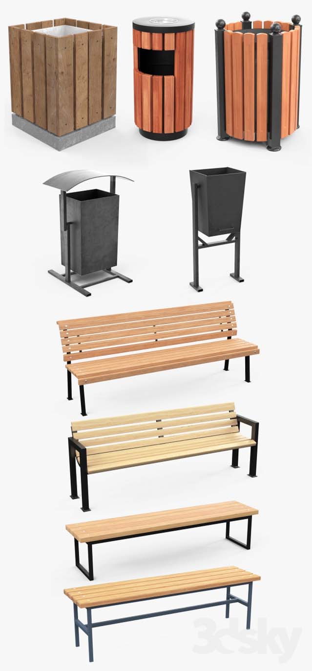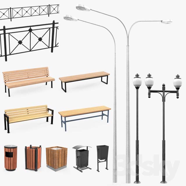 公园路灯垃圾桶和长椅素材之家精选3D模型
