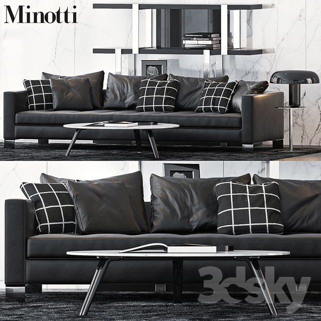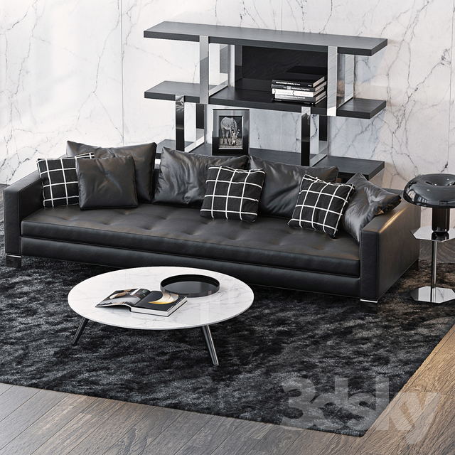 黑色皮质沙发及茶几装饰品素材之家精选3D模型