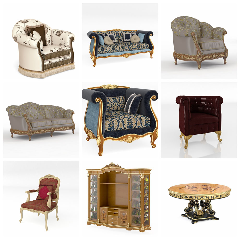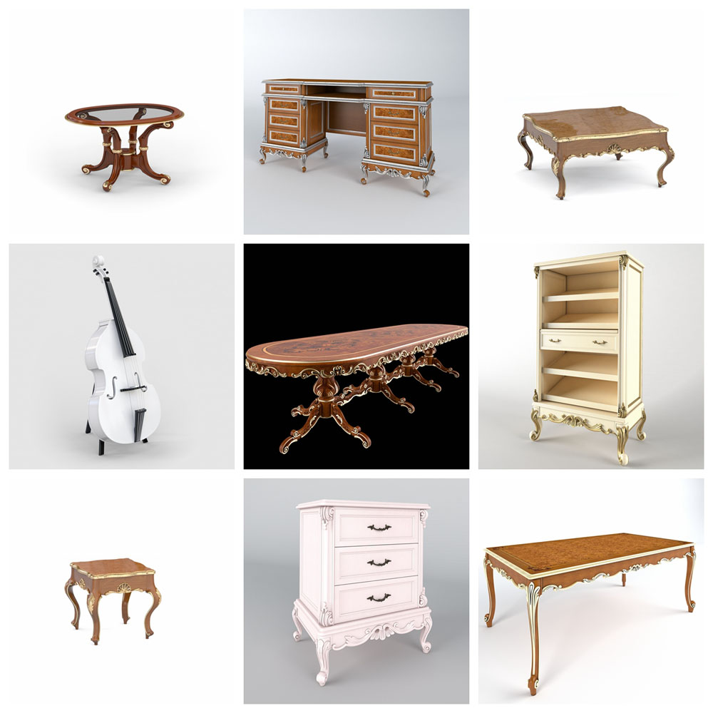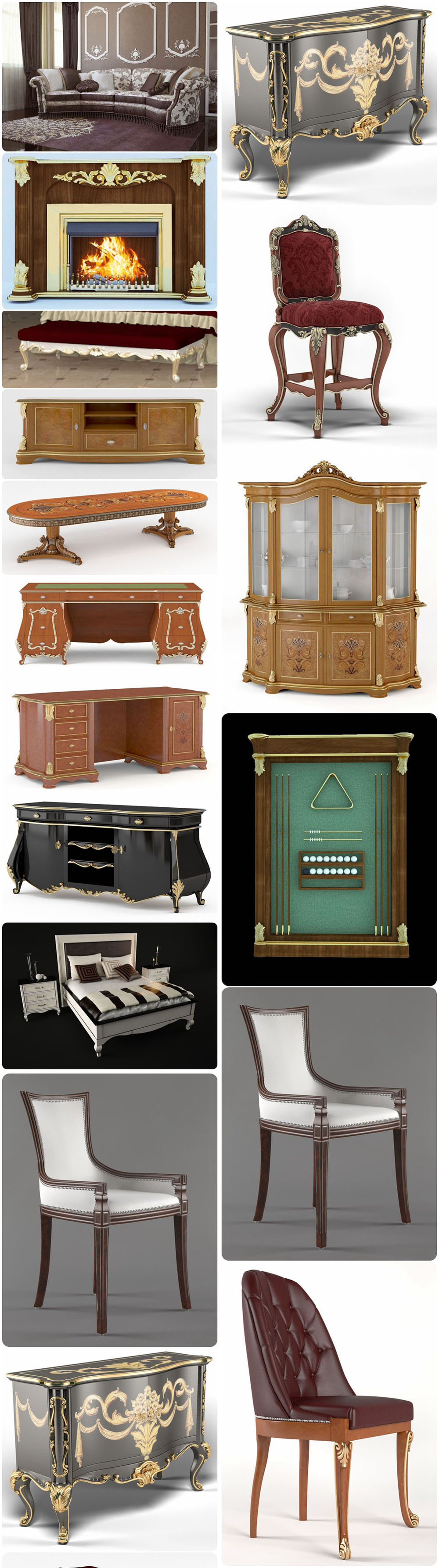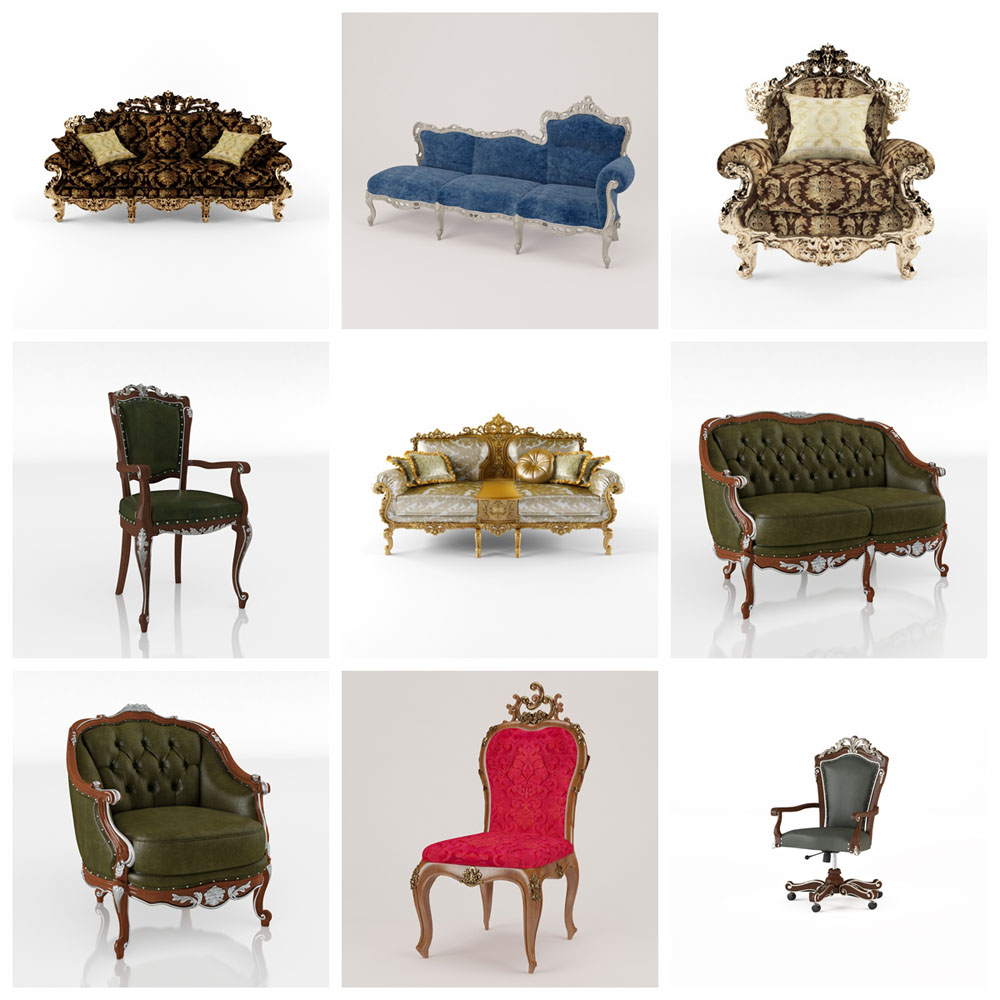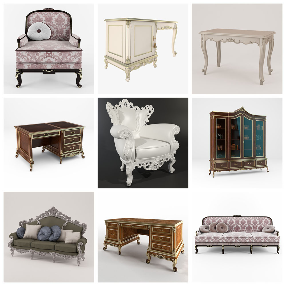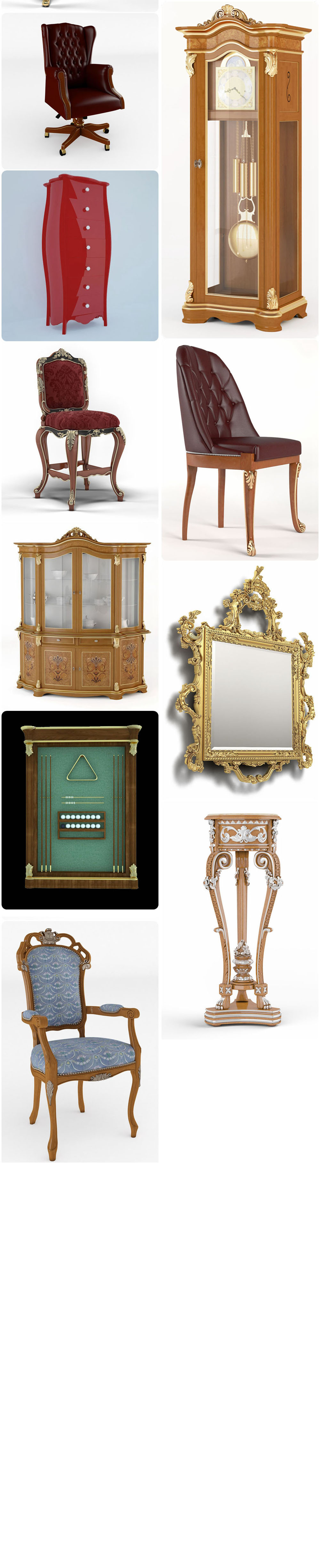 欧式复古实木家具沙发椅办公桌书橱等素材之家精选3D模型