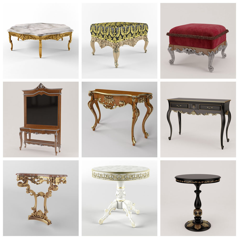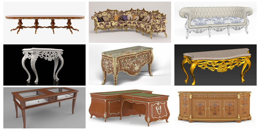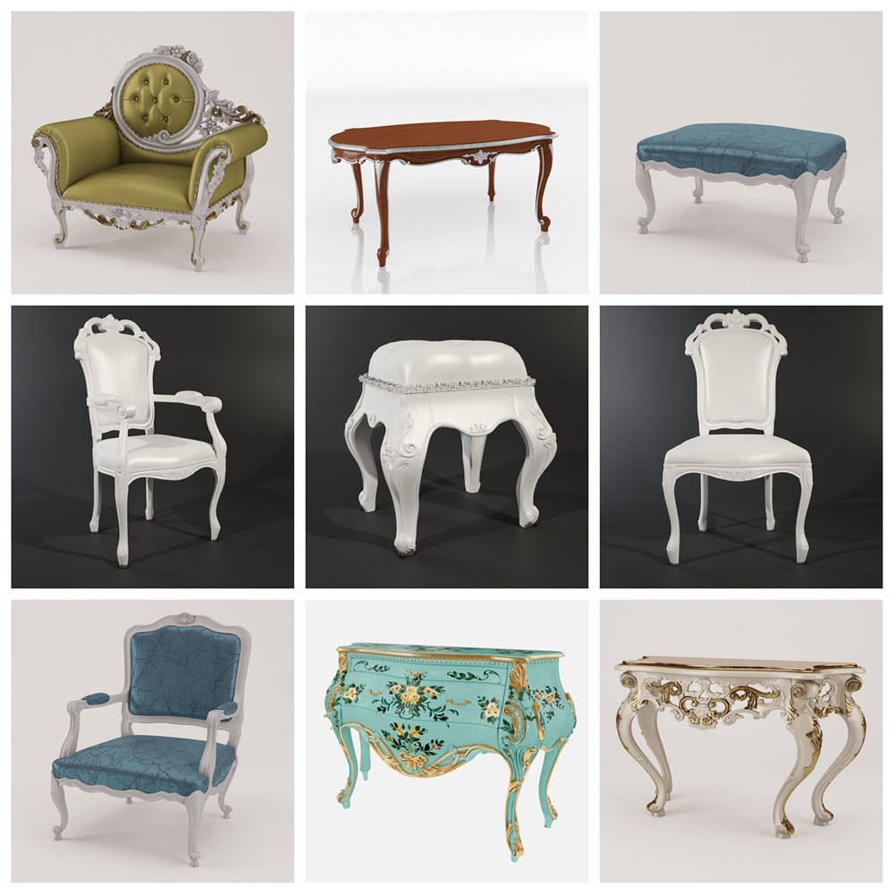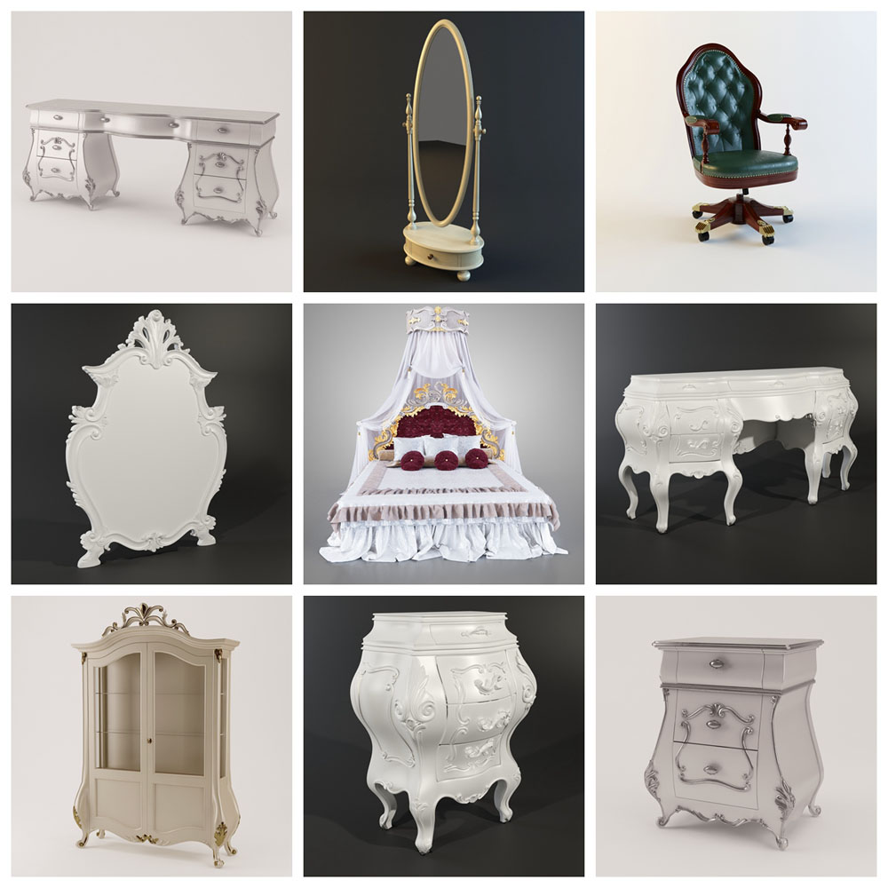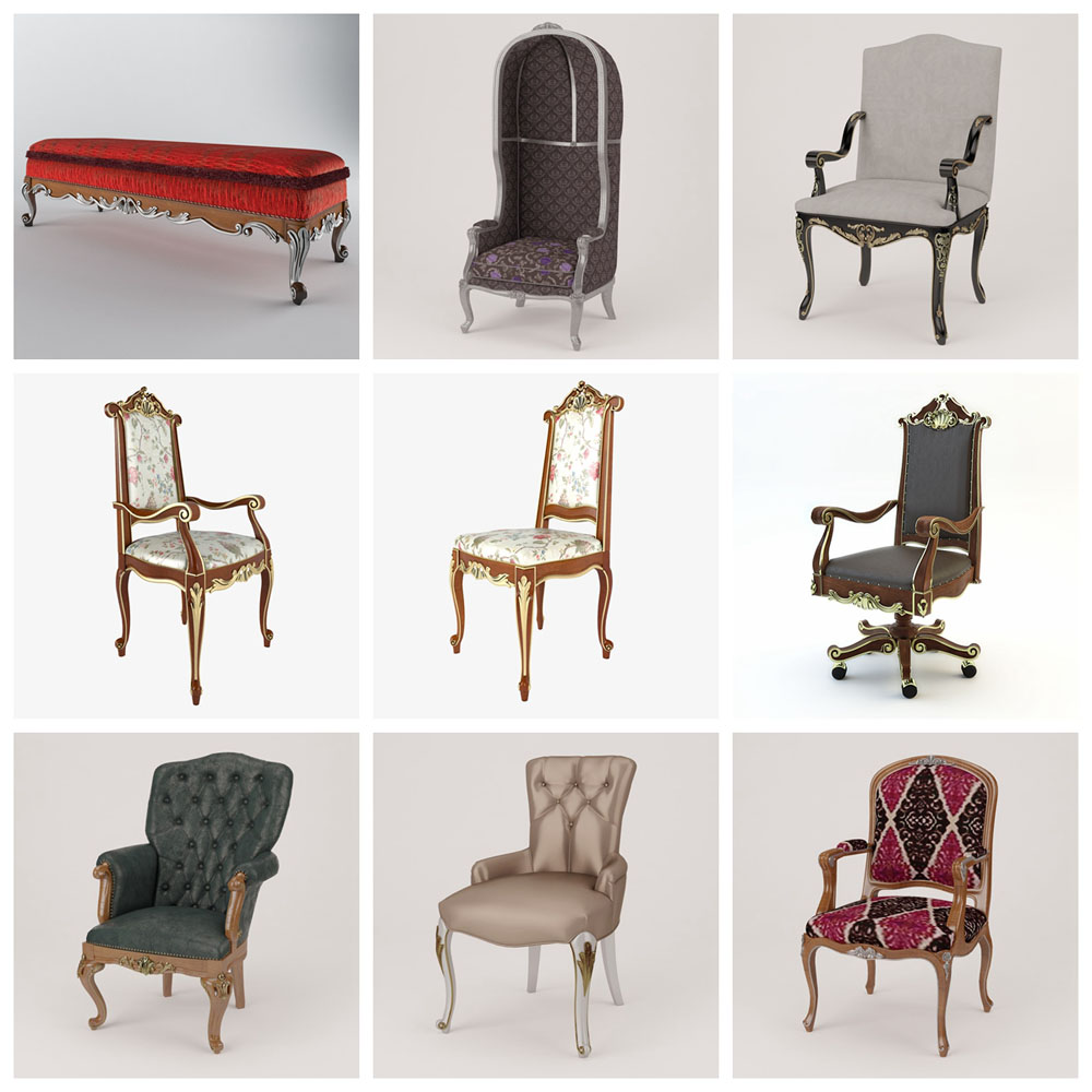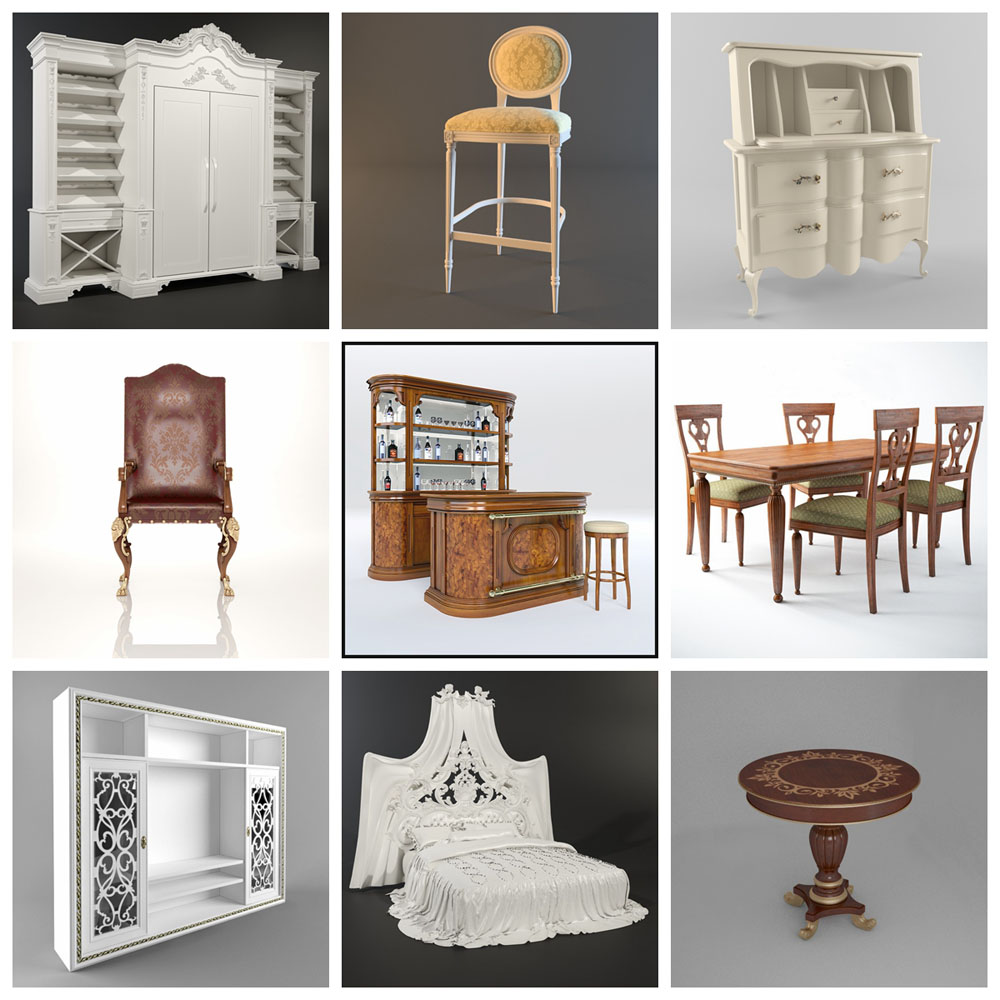 欧式复古实木家具沙发椅办公桌书橱等素材之家精选3D模型