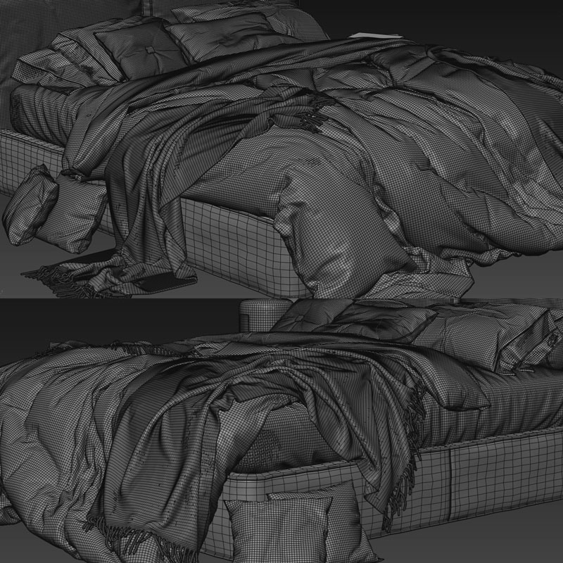 欧式灰色双人床及床上用品素材之家精选3D模型