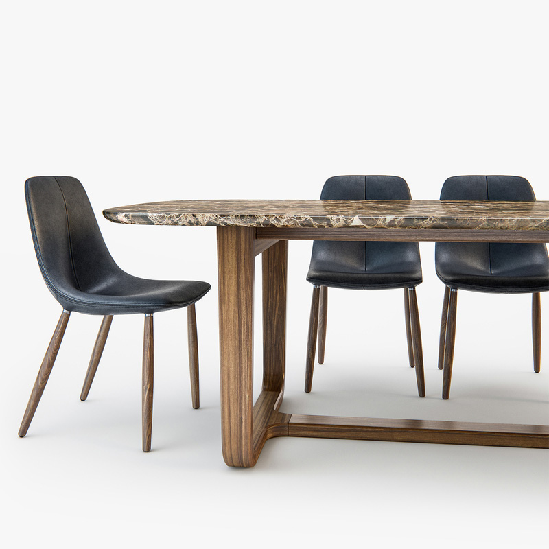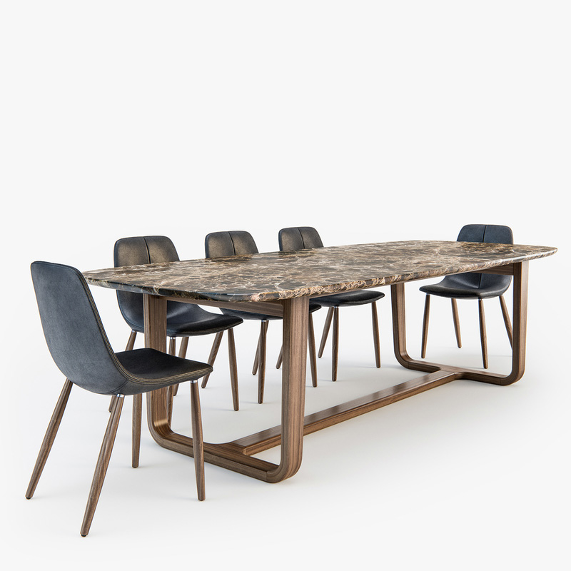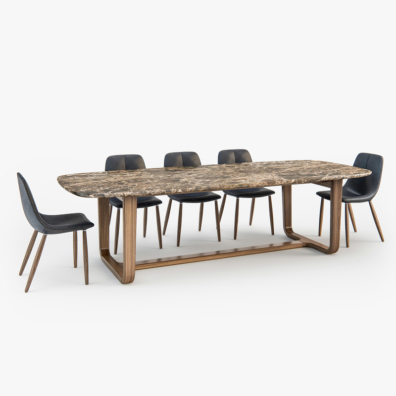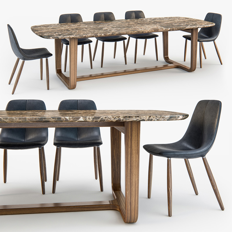 长方形大理石餐桌和皮质餐椅素材之家精选3D模型