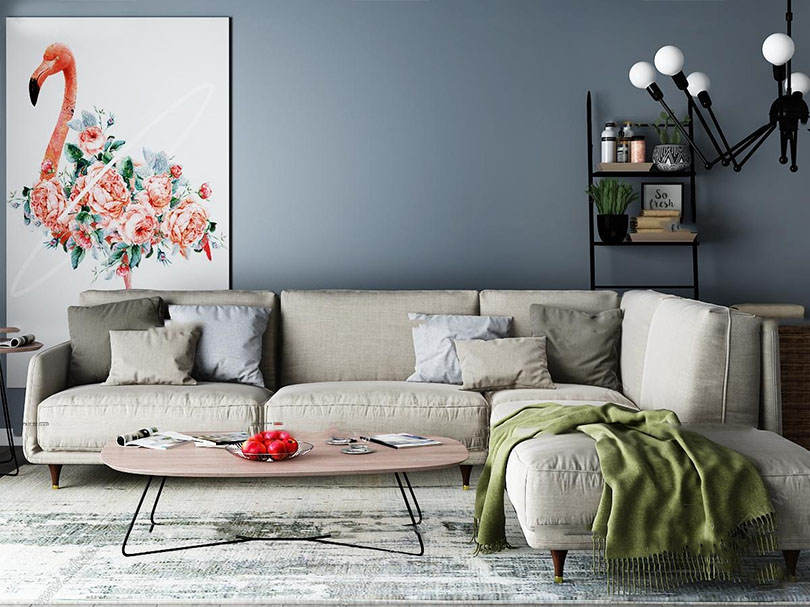 北欧布艺沙发装饰画茶几组合3DMAX模型