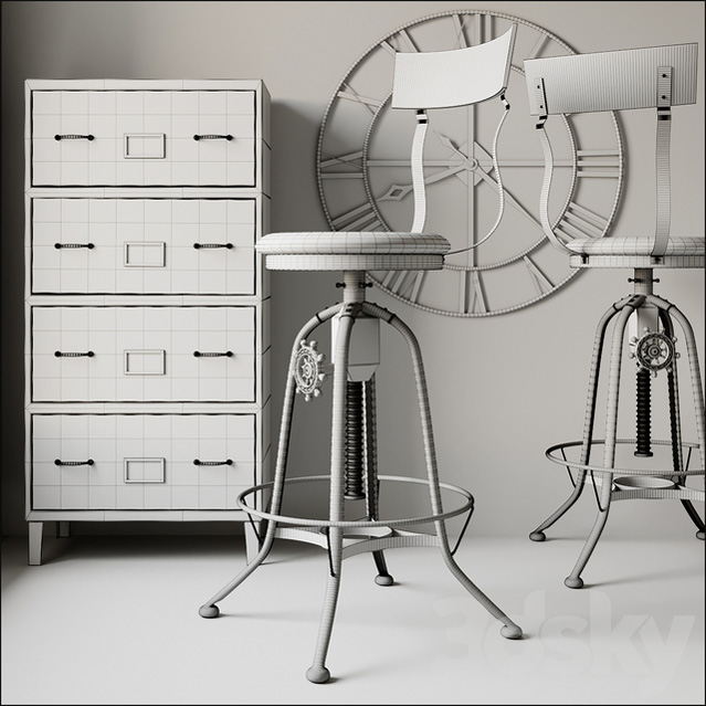 工业风钟楼和椅子文件柜素材之家精选3D模型