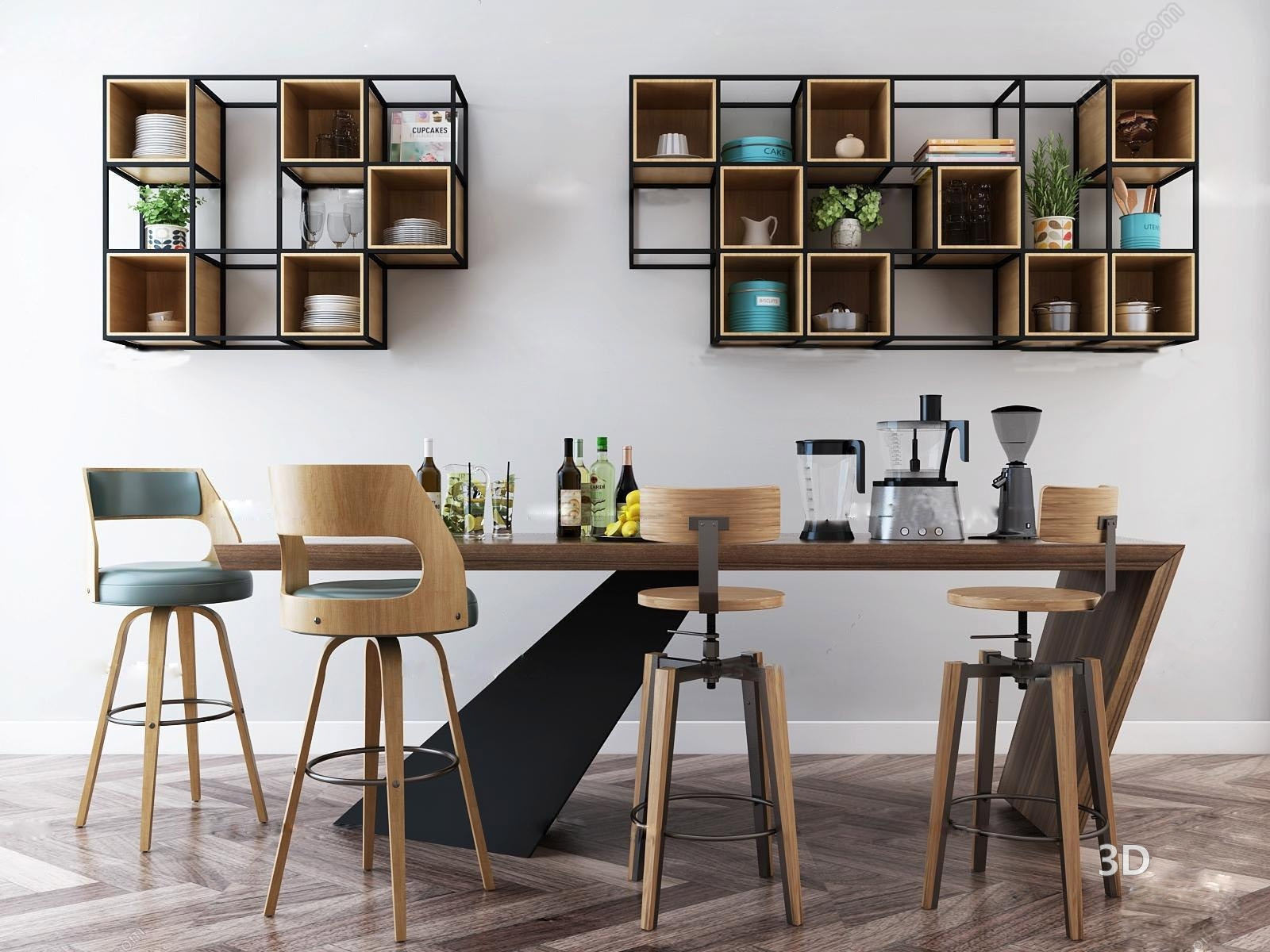 北欧吧台餐椅餐桌装饰架组合素材之家精选3D模型