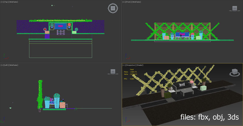 今天素材之家给大家分享的这款3D模型资源名称为:花园户外休息区沙发和绿色植物装饰3D模型,内容与沙发3D,盆栽3D,植物3D,3DMAX,3D模型,MAX,OBJ,FBX相关,文件大小为88.7 MB,模型文件格式为MAX。