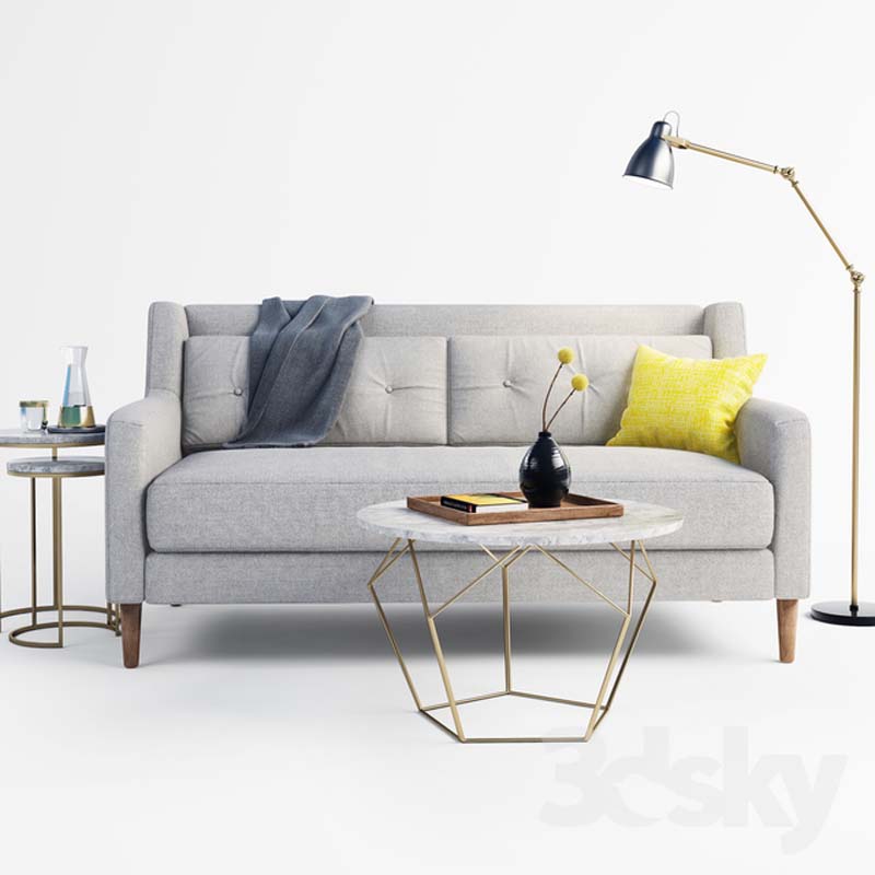 west elm双人沙发和台灯茶几素材之家精选3D模型