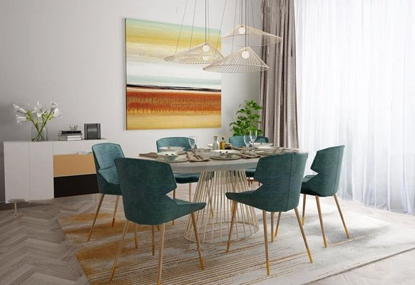 北欧餐厅餐桌椅餐具吊灯组合素材之家精选3D模型下载
