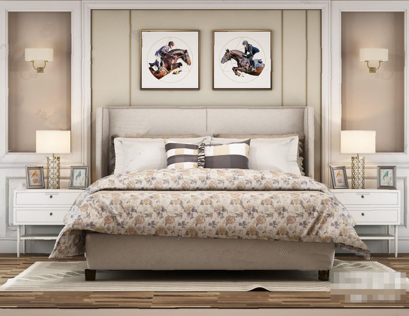现代欧式双人床四件套床头柜组合素材之家精选3D模型
