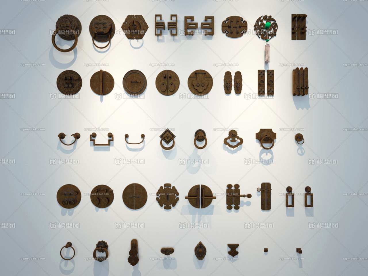 古铜五金拉手,门环,古代锁具素材之家精选3D模型