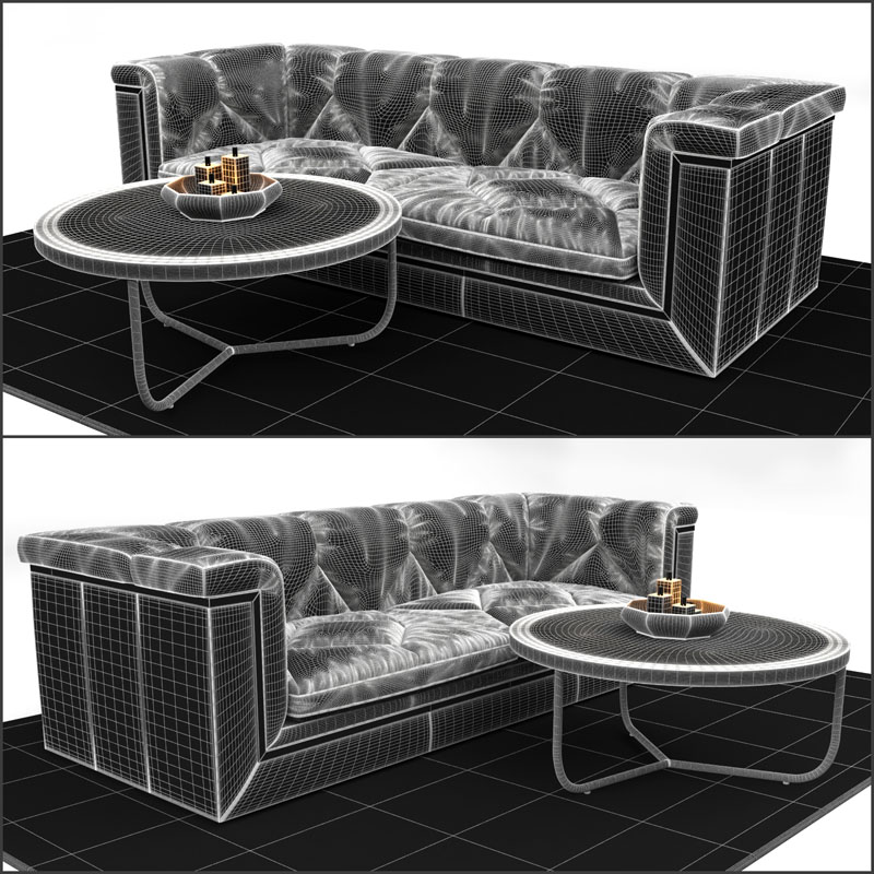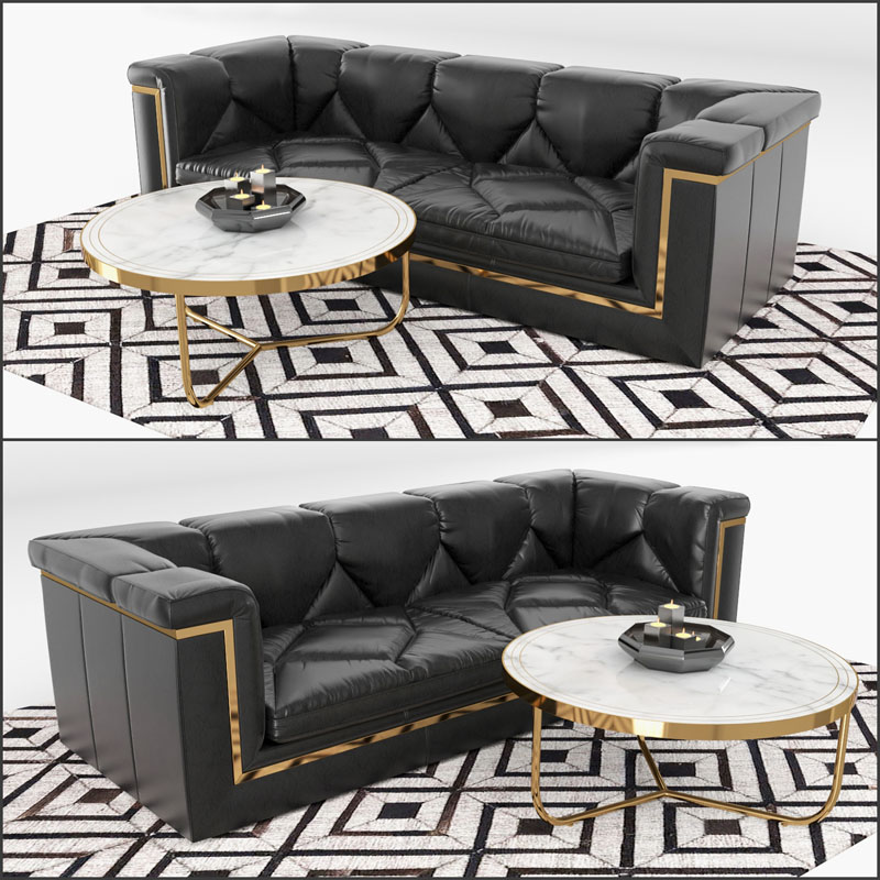 皮质双人沙发和圆形咖啡桌素材之家精选3D模型