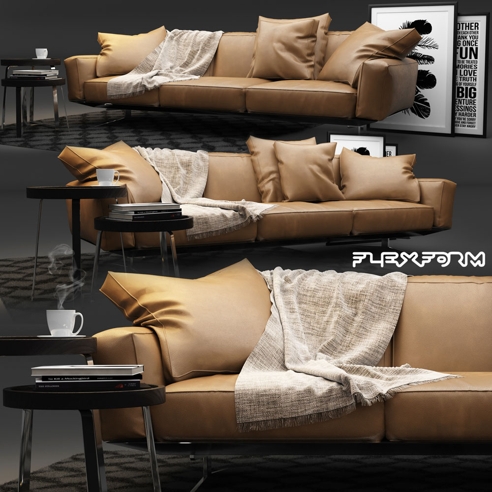 真皮三人座沙发和圆形茶几组合素材之家精选3D模型