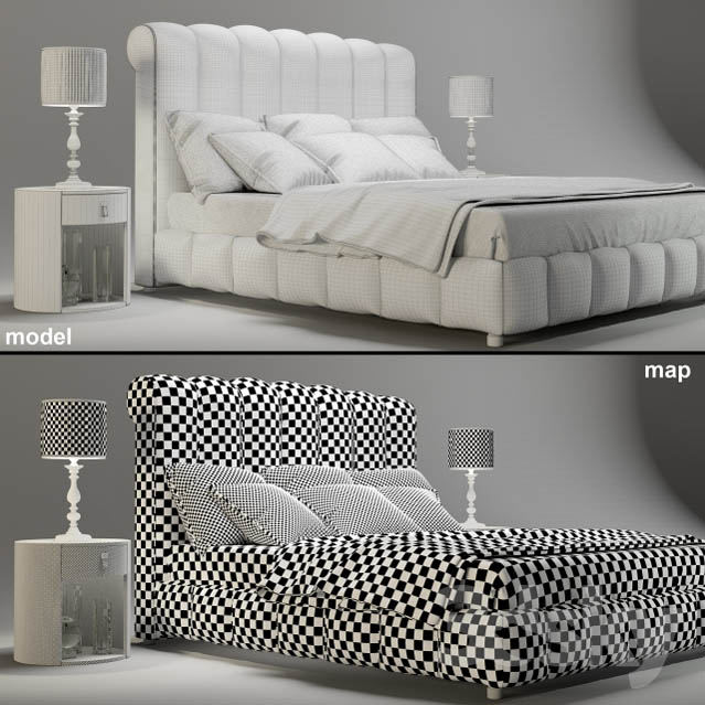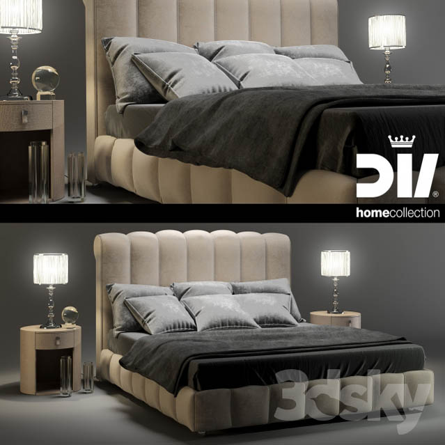 欧式现代双人床和台灯床头柜素材之家精选3D模型组合