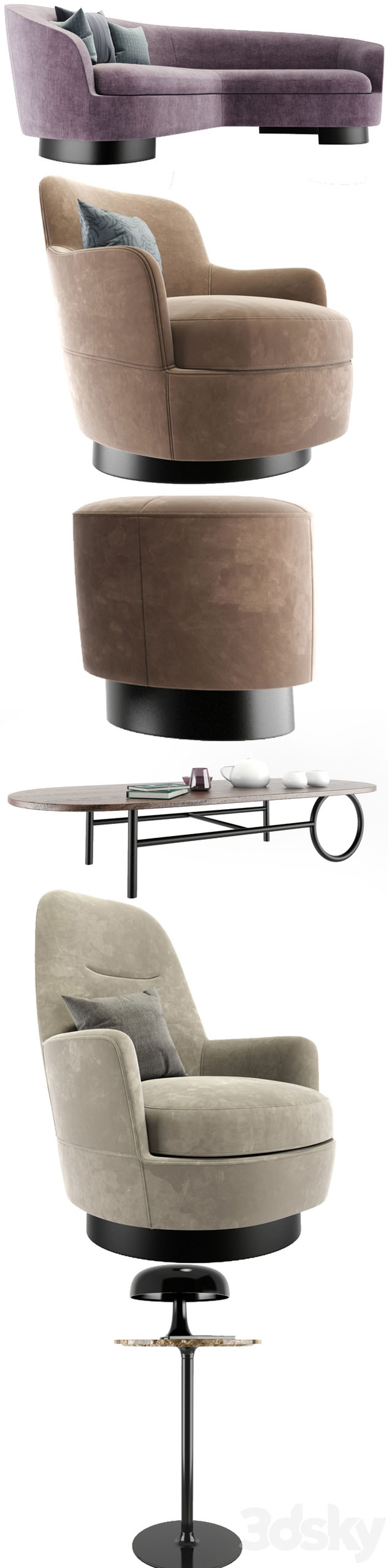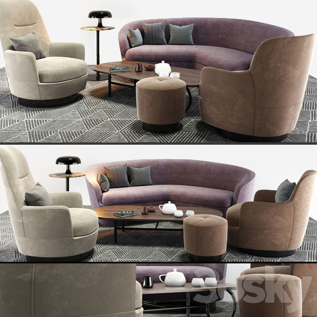 半圆形双人沙发和扶手沙发椅茶几等素材之家精选3D模型