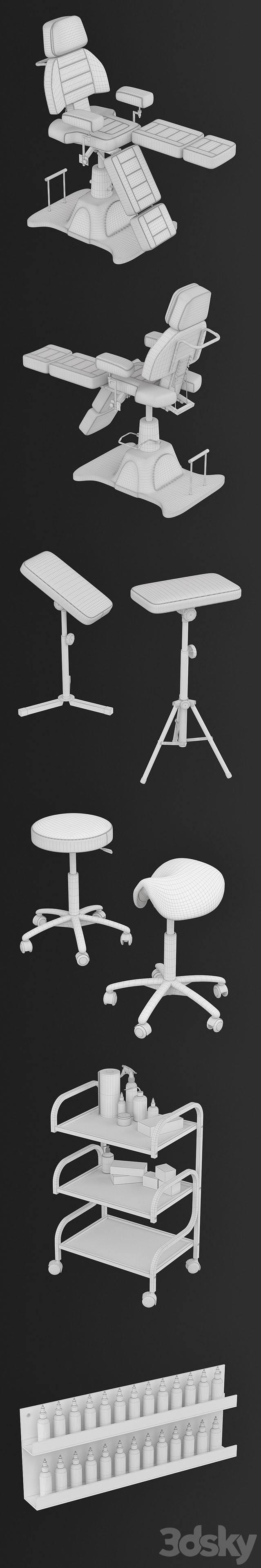 理发店纹身店躺椅货架等配件素材之家精选3D模型