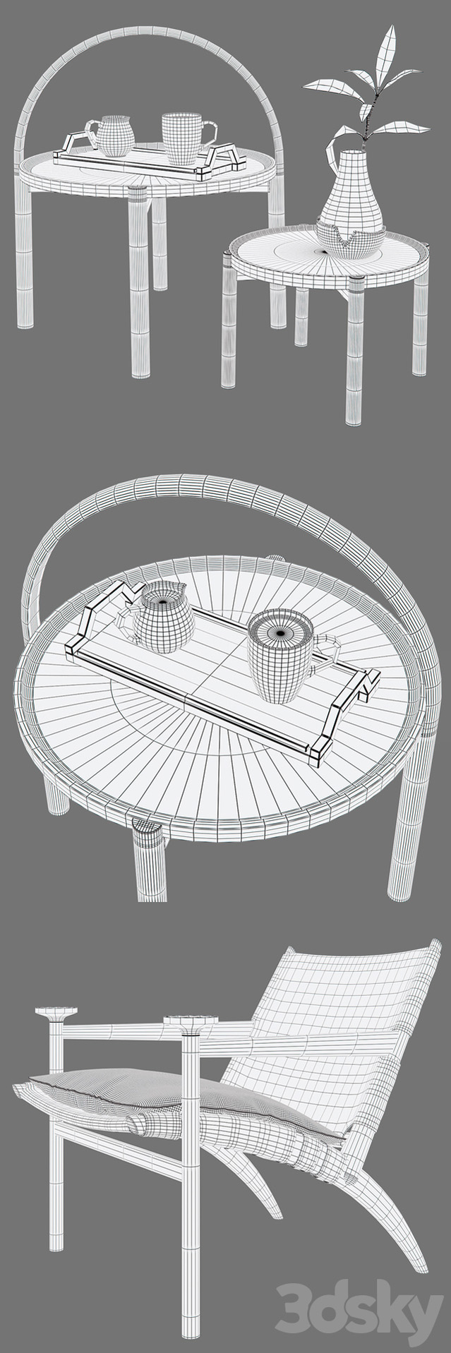 扶手休闲椅和咖啡花卉素材之家精选3D模型