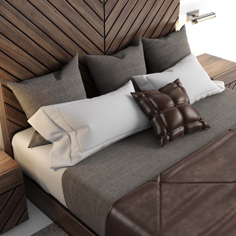 胡桃色双人床3DMAX模型