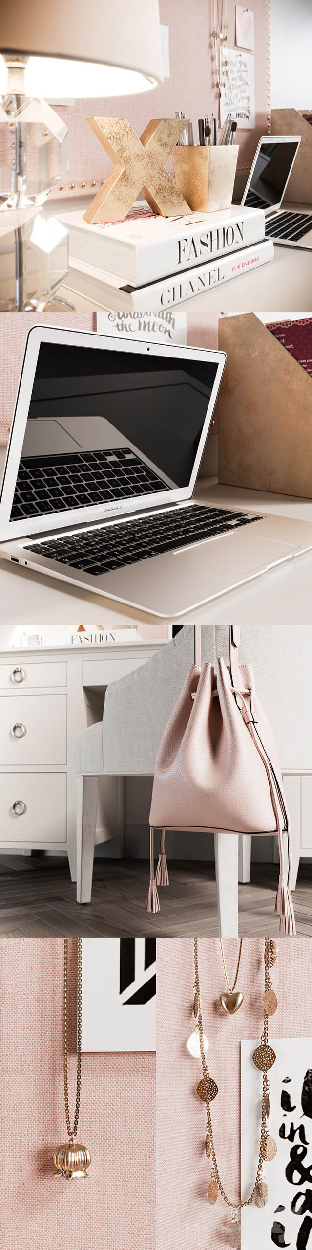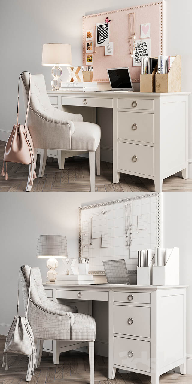 家用写字办公桌椅子和女士肩包素材之家精选3D模型