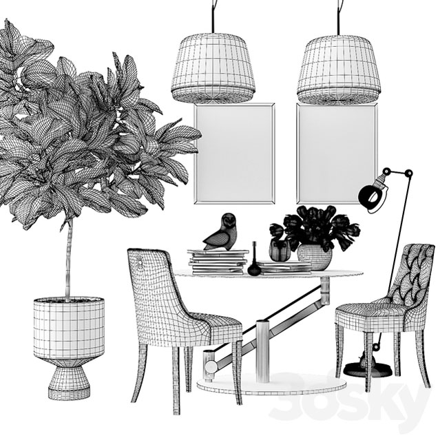 圆形餐桌和绿色植物装饰套装组合素材之家精选3D模型