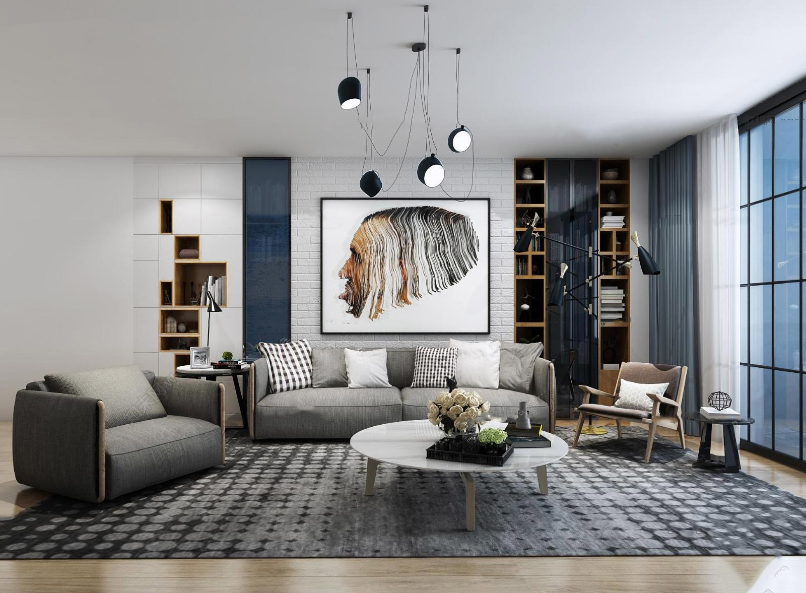 现代布艺沙发茶几组合3d模型