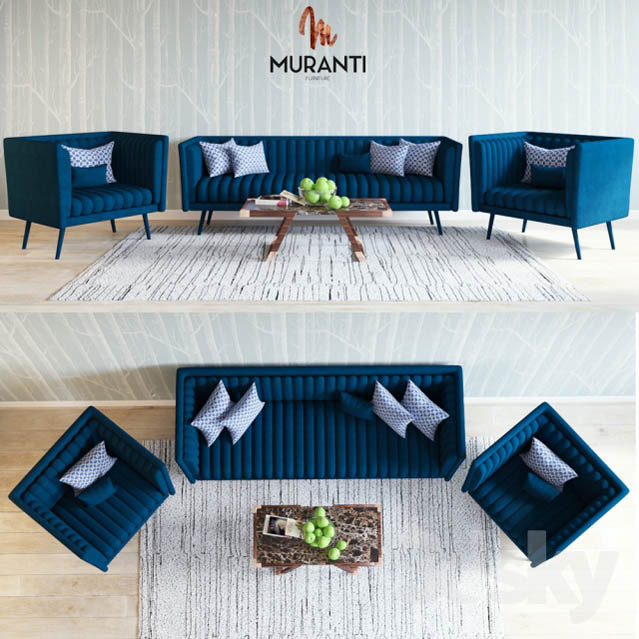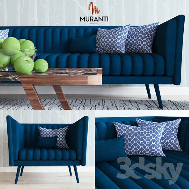 Muranti Azurite and Anatasis AZURITE SOFA WIDTH: 220 cm | 86.6 '' DEPTH: 75 cm | 29.5 '' HEIGHT: 75 cm | 29.5 '' \ AZURITE ARMCHAIR WIDTH: 90 cm | 35.4 '' DEPTH: 76 cm | 29.9 '' HEIGHT: 85 cm | 33.4 '' ANATASIS CENTER TABLE WIDTH: 100 cm | 39.3 '' DEPTH: 50 cm | 19.6 '' HEIGHT: 35 cm | 13.7 '' Corona and materials Vray polys verts 295 435 295 868