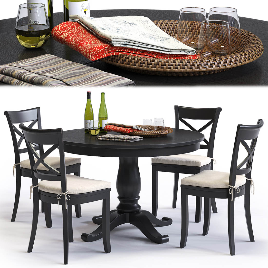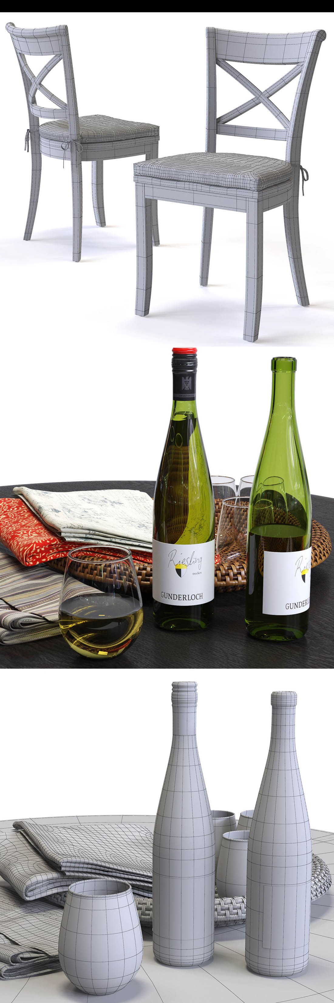 圆形餐桌餐椅和桌子上的葡萄酒酒杯素材之家精选3D模型