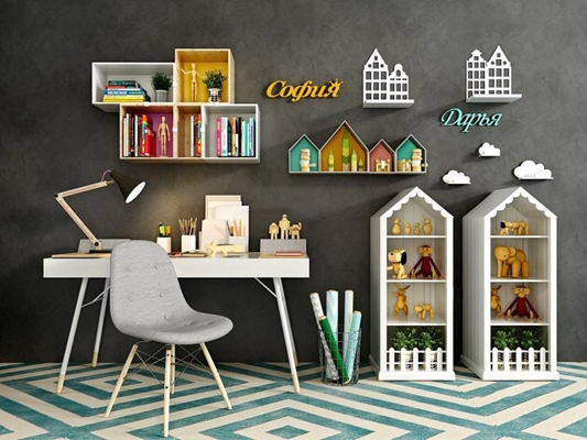 北欧儿童书桌椅和玩具组合素材之家精选3D模型