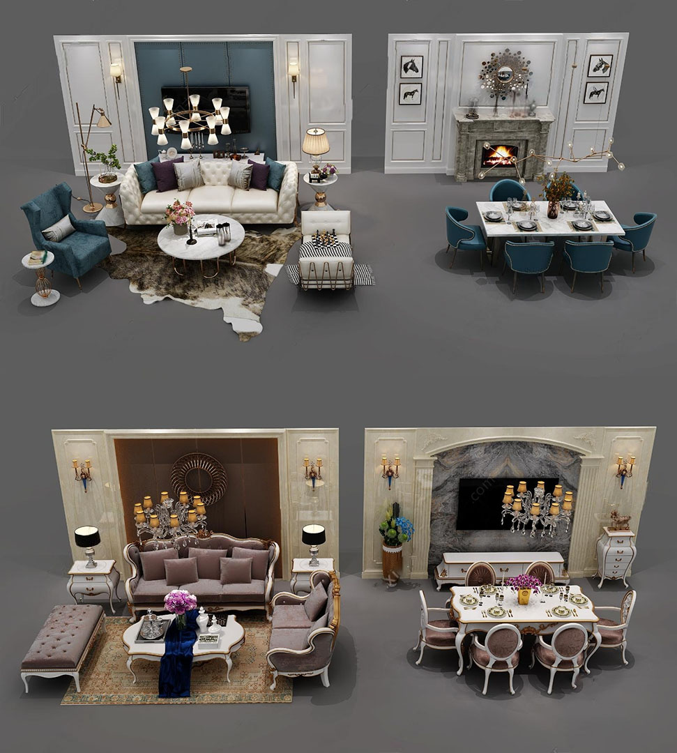 现代简约欧式沙发茶几组合套装素材之家精选3D模型