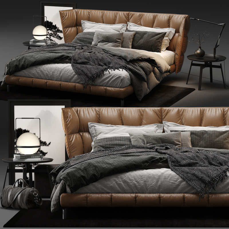 黄色皮质欧式双人床和台灯素材之家精选3D模型